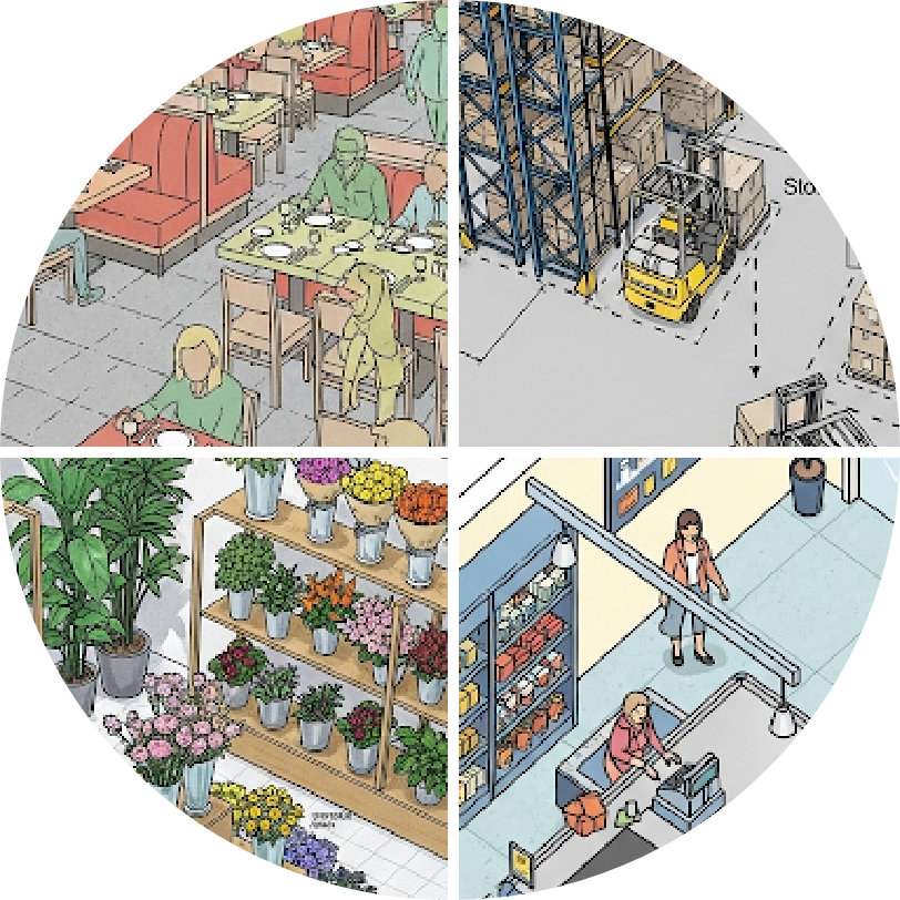 工場でのライン監視や複数拠点管理、倉庫での荷物状況管理に